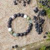 ♓ Pisces, ruled from February 19th to March 20th and symbolizing the colors blue and green, is represented by the natural howlite, jade and fluorite crystals and black lava stone crystals in this diffuser bracelet. All beads in this bracelet are the same size, 10mm.