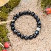Put it on: Gently place the black agate bracelet around your wrist. Make sure it is neither too tight nor too loose, but tight enough to stay in place.