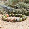 Unakitas išlaisvina jausmus, skatina tobulėjimo ir augimo procesą, stiprina ryžtą ir kantrybę. Kai nesiseka verslas, kankina nepriteklius ar bėdos, suprastėja sveikata – Unakitas kantriai ir veiksmingai padeda atstatyti sveikatą, nes jo energija pasiekia net ląstelių lygmeniu ir atstato normalų organizmo funkcionavimą.
